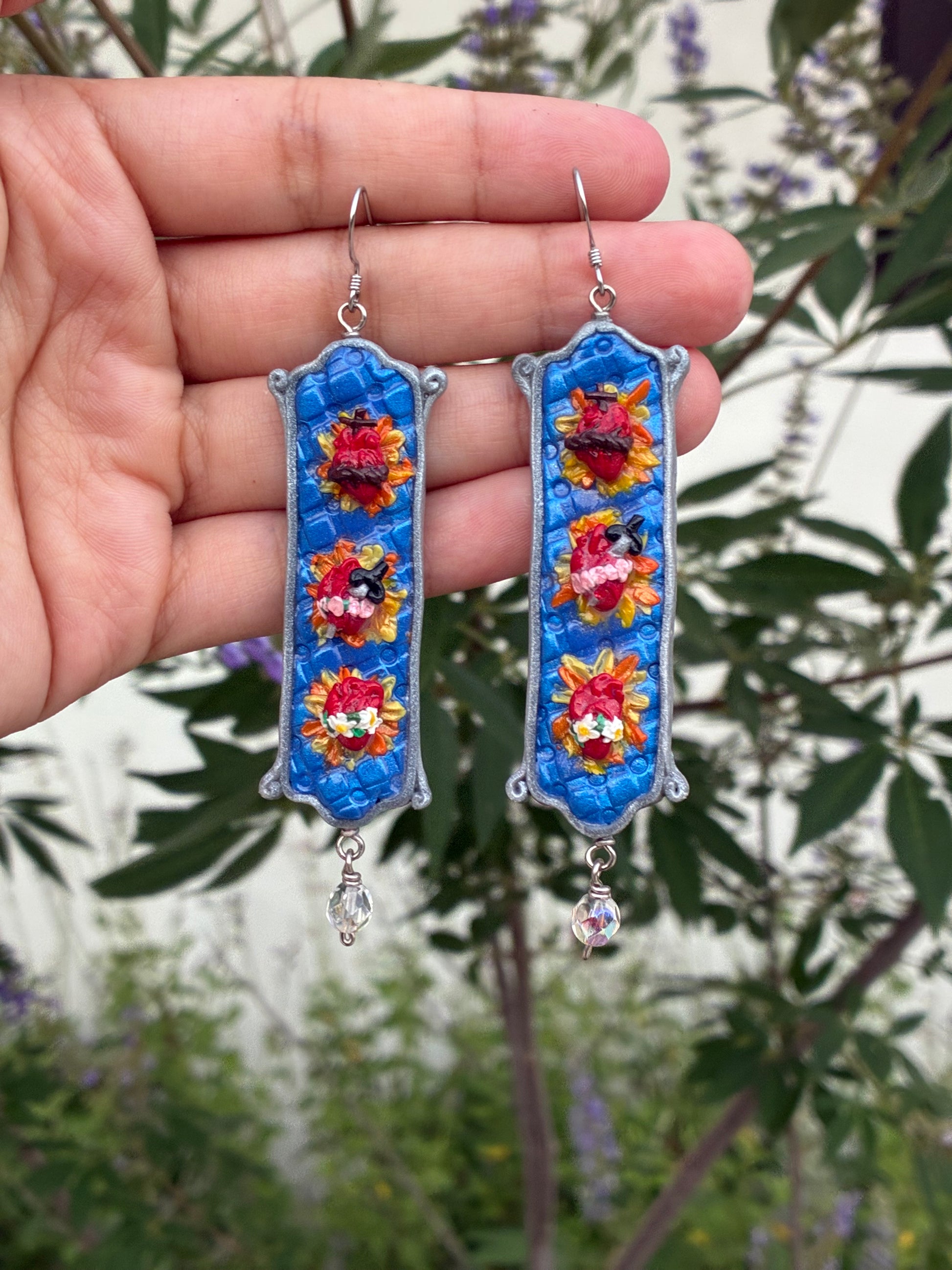 Hand sculpted Holy Family Hearts with a silver frame.