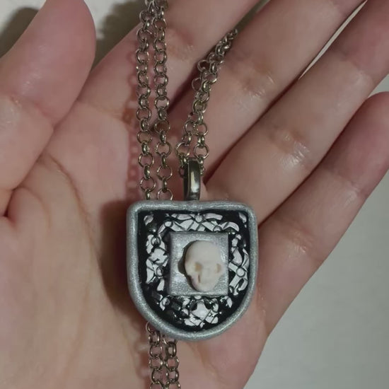 Command attention with a piece sculpted with tradition in mind. The Memento Mori Necklace is a daily reminder of mortality, mission, and resolve. This silver-toned necklace features a rugged, adjustable chain designed to suit any build. Its centerpiece draws inspiration from priestly funeral vestments. Garments worn in solemn rites that confront death with dignity and faith.